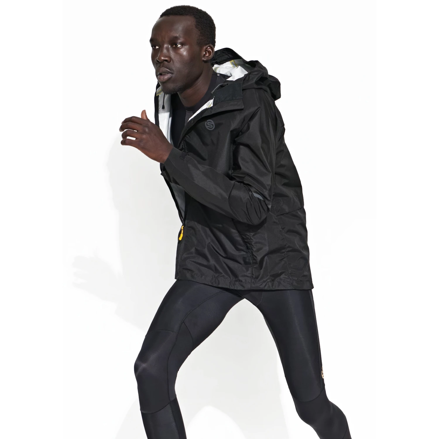 - Packable jacket – one pocket turns into a small bag for storing the jacket with an adjustable waist strap for carrying over the shoulder or around the waist