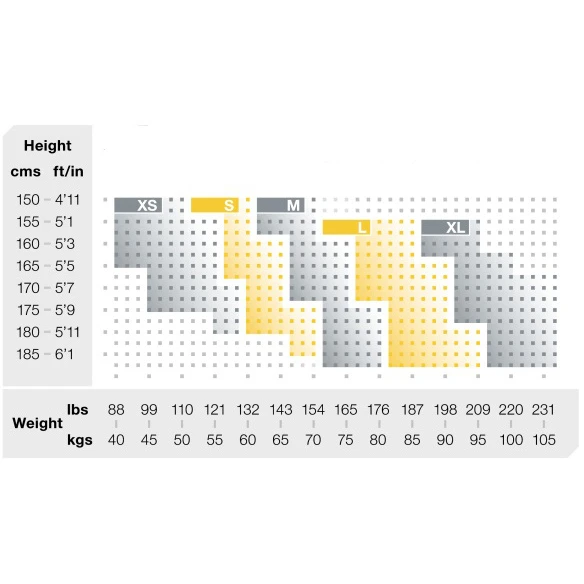 To maximize the effect of compression, it is important to wear SKINS in the correct size. You will find a size chart with the pictures, which will tell you your appropriate size.