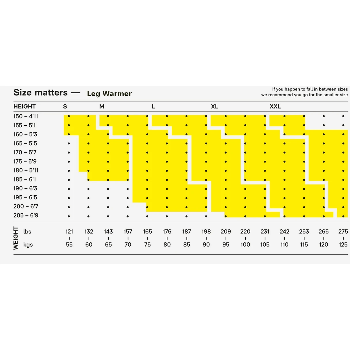 To maximise the effect of compression, it’s important to wear SKINS in the right size. Please see size chart in the pictures above for selecting the correct size.