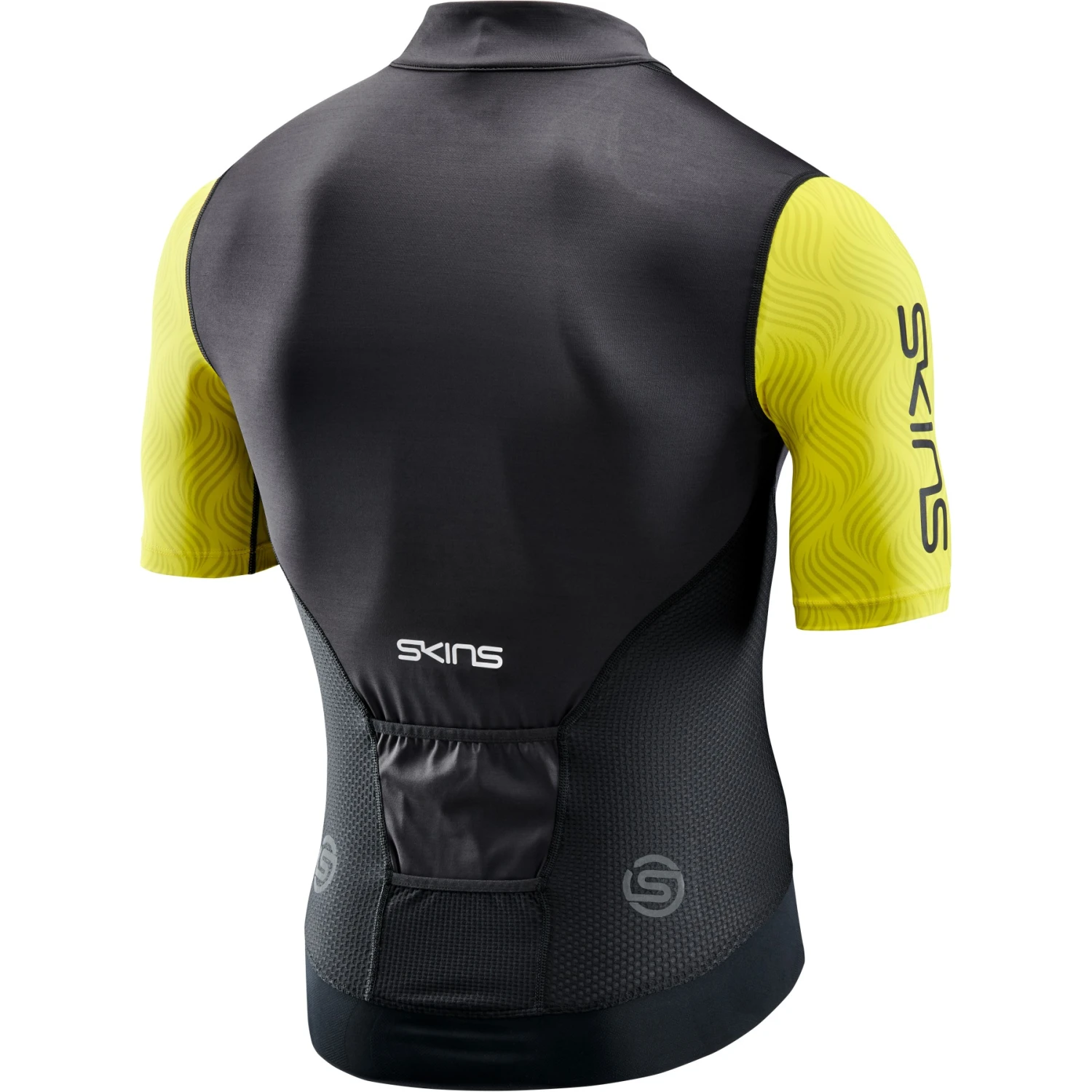The is a “race cut” and fitted jersey. It has a central back pocket system to contour and shape the jersey. It gives the jersey a refined racing style by using print inserts in the short sleeves, giving the SKINS Elite Jersey jersey that extra something.