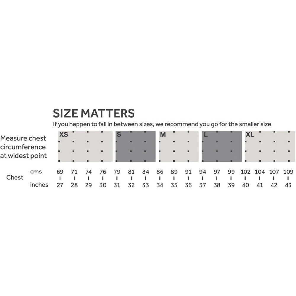 To maximize the effects of compression, it’s important to wear SKINS in the right size. Forget your usual S, M, L, … habits for a minute. If you fall between two sizes, Skins recommends the larger one. That’s why you will find a size chart with the pictures, which will tell you the right size for you.